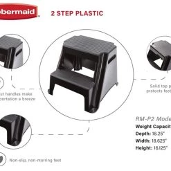 Rubbermaid 2-Step Molded Plastic Stool with Non-Slip Step Treads