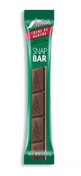 Andes® Creme de Menthe Snap Bars feature the traditional three-layer Andes® candy in a bar that is easy to snap off and share or consume yourself! The same smooth blend of mint and chocolate flavors for a delicious on the go treat. Aw, snap!