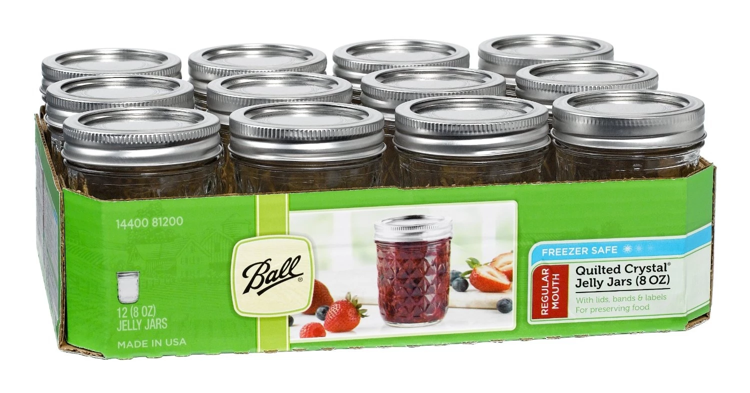 12 Ball® Regular Mouth quilted crystal glass preserving jars