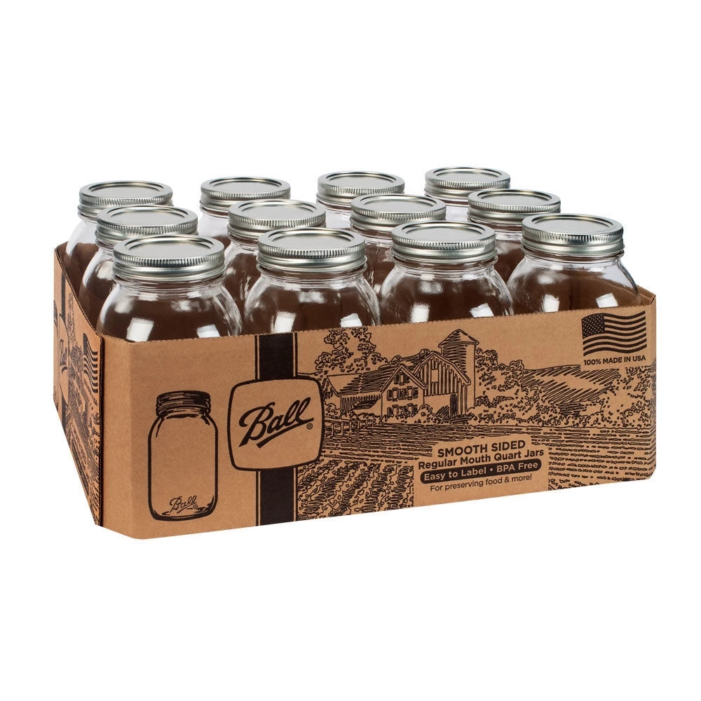 Ball Smooth-Sided Regular Mouth Quart Jars, 12 Ct.