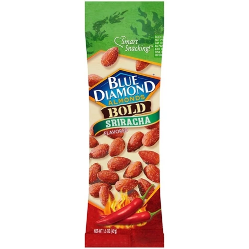 Our BOLD flavors are heating up with new Sriracha flavored almonds. Fans of the bold, complex flavors of Sriracha hot sauce can now experience that tangy heat on Blue Diamond almonds.Â
