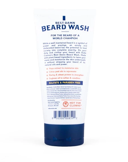 Duke Cannon’s Best Damn Beard Wash is made with plant-based ingredients to tame your mane and moisturize the skin underneath it without stripping your beard of its natural oils and power.