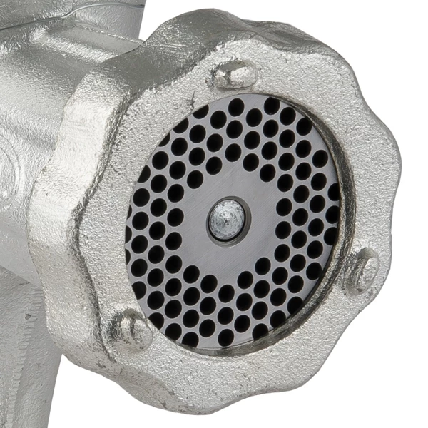 The #10 clamp-on hand grinder has a 3 3/8″ x 4″ hopper opening. This grinder comes with 3/8″ and 3/16″ plates and a knife. Cast aluminum and well made for long lasting service.
