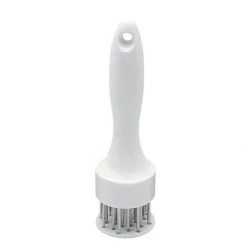 The tenderizer will improve the texture and the taste of poultry, fish or beef, while also hastening the marinating and cooking time. Heavy duty spring action mechanism controls action precisely. Has 24 stainless steel prongs.