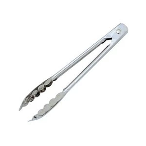 Professional gauge stainless steel with sliding ring to lock tongs in place.