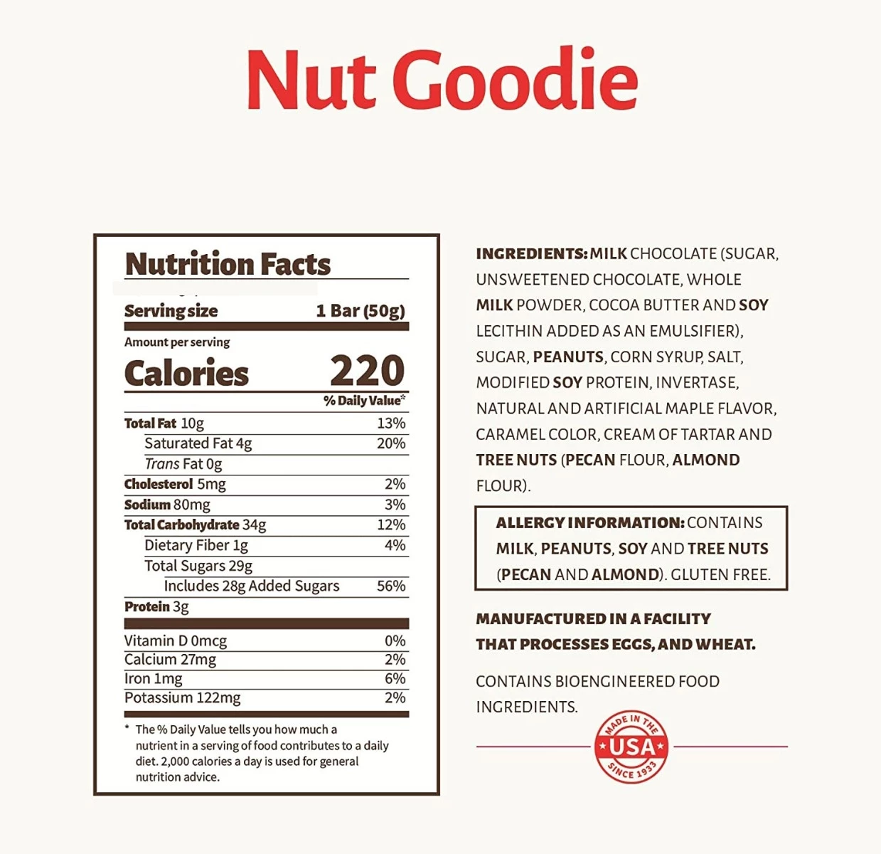The Nut Goodie Bar is a solid choice for anyone who loves chocolate and nuts. Itβs a classic for a reason.
