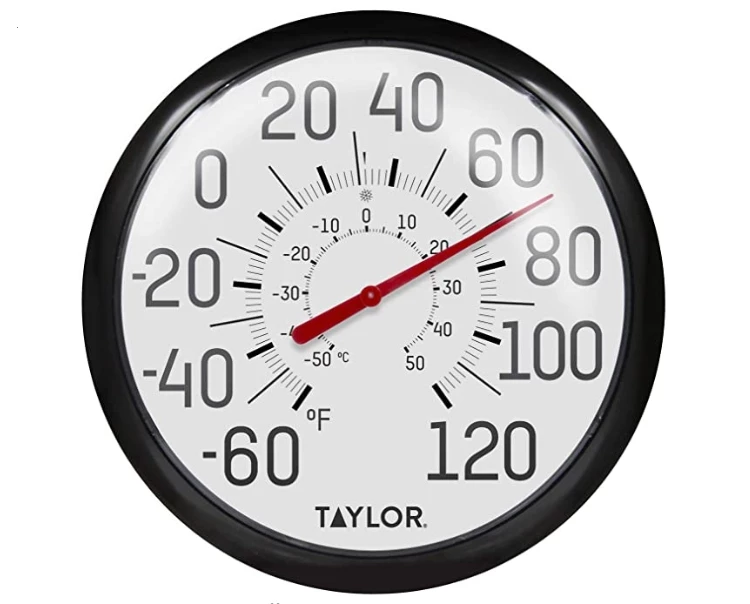 Ideal for gardeners and outdoors enthusiasts alike. An extra-large 13.25-inch display provides at-a-glance readings from far away, while the thermometer’s shatterproof lens is designed to withstand harsh elements without compromising visibility. Its tough, weather-resistant finish resists stains and will not fade. The dial thermometer is lightweight, mounts easily on any flat surface, and fits perfectly into any deck, patio, or garage layout. With both F° and C° scales, you’ll always have the most accurate readings at-hand in any temperature format.